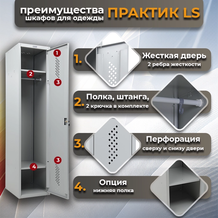 Шкаф ПРАКТИК LS 11-50 – это сочетание надежности, функциональности и современного дизайна. Он станет отличным выбором для организации удобного и безопасного хранения